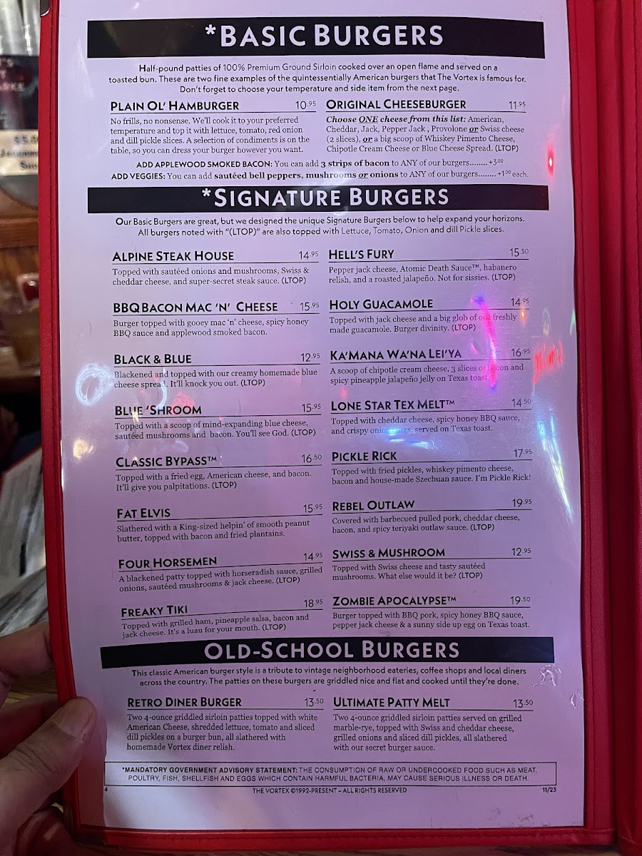 Whether you're a local or just passing through, make sure to check out The Vortex Bar & Grill for a truly memorable meal.